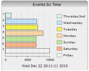 Lucky owners of the commercial service subscription get another handy tool. With a help of Events by Time chart you can do basic trend analysis and watch for unusual event peaks. Here is a sample of this chart as well.